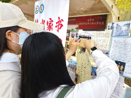 5月27日,刑事司法学院星火迷彩社在校园文化广场举行“烽火家书 青春报国”红色家书主题展,活动吸引了众多师生驻足。