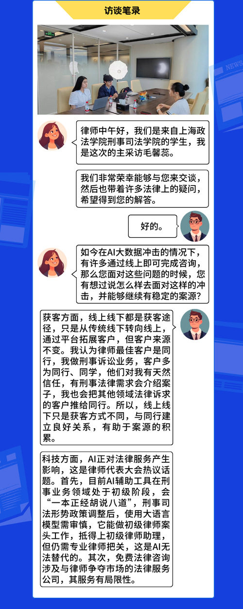 本次调研,师生团队将根据访谈实况,结合资深律师生涯经历汇编出指导手册,并在职业规划课上进行展示讲解,并实时收集指导效果反馈,利用好多媒体展示平台,让更多的学生去聆听到一线真实的行业声音。(郭智涵、李庚晋等人供图撰稿)