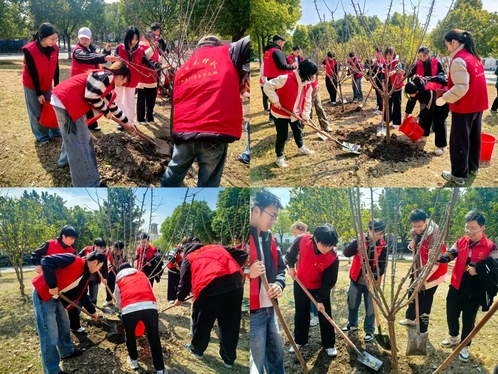 活动现场党旗高高飘扬,上海政法学院第19学生党支部的学生党员们热情饱满、主动担当,在后勤保障处负责老师的专业指导下,积极投身活动全过程。大家分工协作、默契配合,经过共同努力,一排排新栽的树苗挺拔而立、迎风舒展,不仅为校园增添了一抹春日生机与绿意,更让全体参与人员在实践中真切感悟到共建共享的深刻意义。