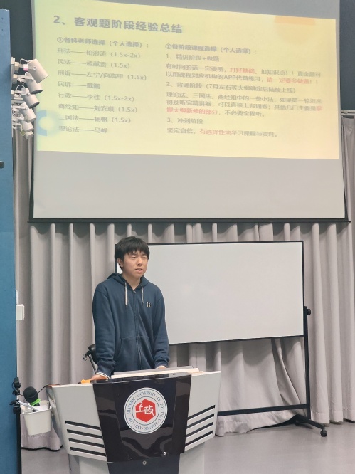 学姐学长们围绕“三考”实战分享:考研方面,详解院校选择、备考规划、资料筛选及调剂流程;法考方面,梳理客观题与主观题备考逻辑,强调真题演练;考公方面,分析国考、省考考情,讲解行测申论技巧与报名规划。