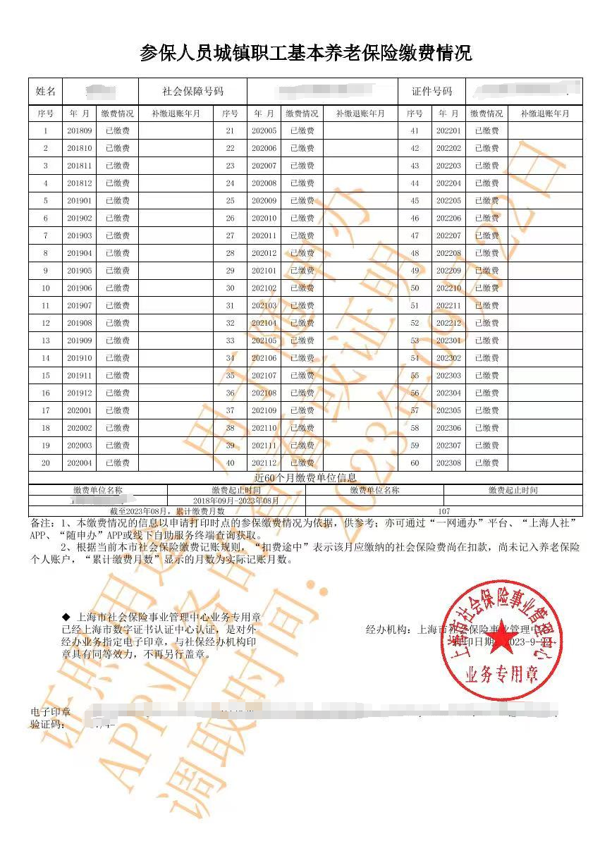(4)非上海户籍往届生须提供2025年连续6个月在上海的社保缴费成功记录(随申办APP中搜索“参保人员城镇职工基本养老保险缴费情况”后查询下载相应图片,或至社保网点打印《参保个人城镇基本养老保险缴费情况》),缴费状态是已缴费或视同缴费(样张见附件6);