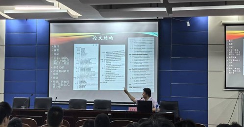 夏国军教授将团课内容分为精准架构、聚焦创新、思辨指引三个部分。首先,夏教授强调论文题目要生动有新意,要言之有物也要大小适度;第二,夏教授指出写论文要找到文献综述余创新点之间的平衡,既要合理分析学术界已有研究也要站在巨人肩膀上做学问;最后,夏教授强调学术写作是知识生产中的艰难建构。研究者需在众多文献中综合提炼,将模糊概念变成清晰的结构框架,并使论证环环相扣,符合学术规范。这一过程如同在未知中勘探,最终使内隐的思辨炼为严谨的文本。
