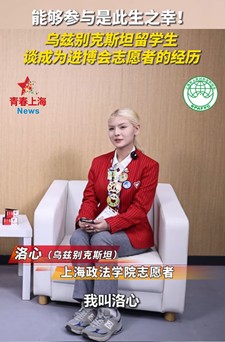 来自“一带一路”共建国家乌兹别克斯坦的留学生洛心,凭借对中、英、俄、乌兹别克四国语言文化的深刻理解与鲜活体验,接受央视新闻采访1次,澎湃新闻采访2次以及青春上海专访,以留学生视角讲述跨文化交流的温度与力量,成为进博会上亮眼的志愿者风采。