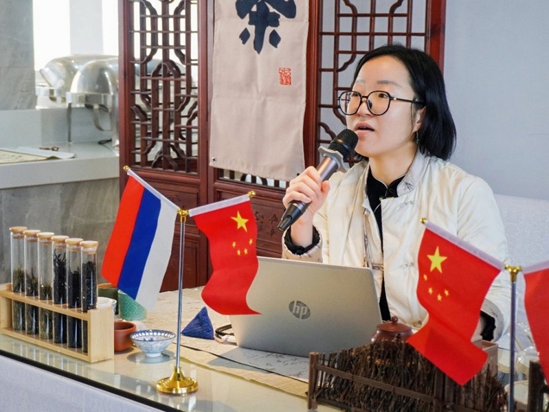 11月27日上午, 国际教育学院(筹)(继续教育学院)和语言文化学院(国际交流学院)顺利举办“中俄青年友谊茶会”。朴归茶道社指导老师、语言文化学院(国际交流学院)俄语教研室张晓玲副教授受邀为俄罗斯联邦总统国民经济和公共管理学院的学生做中国茶文化讲座。本次活动以中国茶文化为核心纽带,搭建起中俄青年交流互动的平台,以青年视角践行文化外交与民间外交理念,助力茶文化精准国际传播,让两国青年在茶香中拉近距离、在交流中增进理解、在互动中建立友谊。