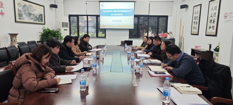 会议伊始,语言文化学院党总支副书记(主持工作)周怡首先介绍了学院在语言学、跨文化交际、国际交流等领域的学科优势与资源积累。她表示,学院高度重视与附属中学的联动,期待通过务实合作,将高校的理论研究与基础教育实践相结合,共同探索国际化人才培养的新路径。上政附中党支部书记、校长毛金华介绍了学校的办学特色,并重点阐述了目前承担的“提升学生国际交流能力”课题的背景与目标。他期待依托学院的专业力量,进一步提升附中的外语教学水平与跨文化课程建设能力,切实提升学校的办学质量与特色发展。