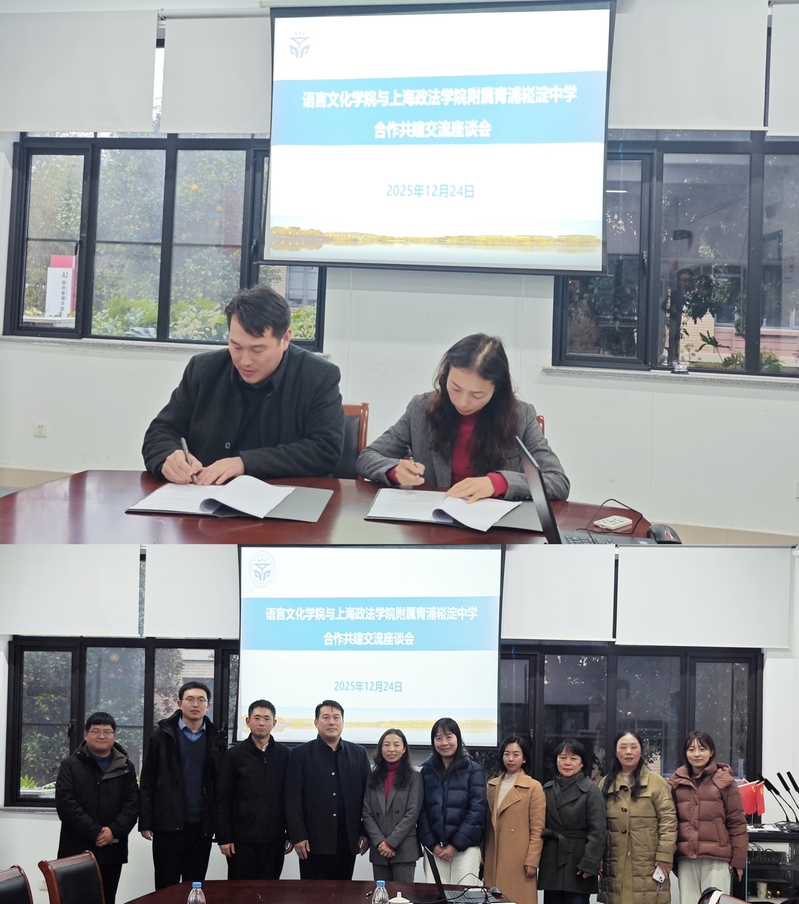 2025年12月24日下午,语言文化学院(国际交流学院)与上海政法学院附属青浦崧淀中学合作共建签约仪式在A1-101会议室举行,仪式由语言文化学院党总支副书记魏洲阳主持。