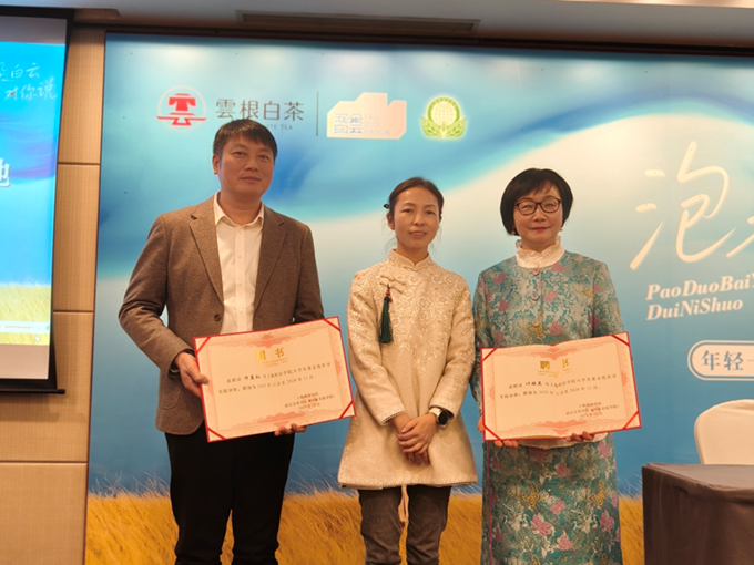 许益灿介绍,福建省政和云根茶业有限公司是一家涵盖种植、研发、生产、营销、品牌建设与茶文化旅游的全产业链企业,曾获“福建省省级重点龙头企业”“中国白茶十强企业”“中国白茶产业创新十强企业”“白茶行业领军品牌”等多项荣誉。面对行业新挑战,云根将进一步深化产学研合作,以“工艺保障+品牌创新”双轮驱动发展,支持高校学生茶文化双创项目,欢迎师生赴企业基地开展研学活动。企业愿以开放态度与青年学子展开对话,借助青年视角与智慧推动产品创新,推广“轻量化茶生活”方式,为茶行业持续发展注入新动力。
