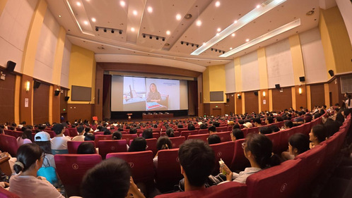 在师生见面会前,全场师生共同观看暖场视频《师说》,温情的画面生动展现了学院的育人理念与师生风采,为现场增添了浓厚的温情氛围。