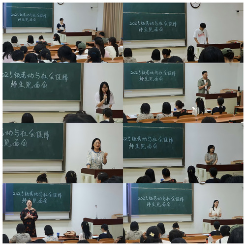 金秋时节,天高气爽。为欢迎2025级新同学的到来,增进学生的专业认知与归属感,政府管理学院劳动与社会保障教研室于2025年9月23日在A8-101成功举办了新生师生见面会,劳动与社会保障教研室全体教师、辅导员、2025级专业新生参加会议。本次见面会旨在搭建一个师生零距离交流的平台,通过多元的视角分享,引导新生们深入了解学科内涵,规划大学生活,正式开启在劳动与社会保障领域的探索之旅。