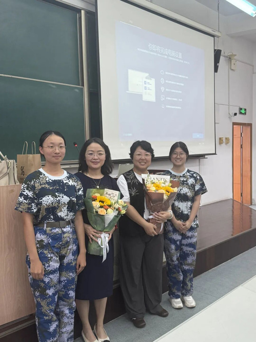 行政管理的两位专业课老师申剑敏和赵雅丹,也来看望军训中的新生,勉励新生将军训中学到的坚持和团结协作融入日后大学生活中,刻苦学习专业课知识,丰富自己的知识面。