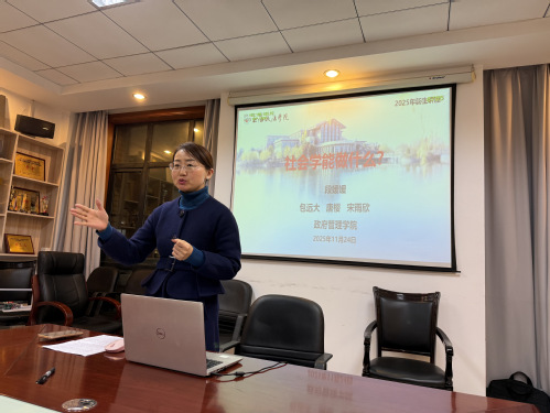为帮助2025级新生快速适应大学生活、明确未来发展方向,社会学教研室主任段媛媛副教授于11月24日晚在A4-201开展了题为“社会学能做什么?”的新生讲座。本次讲座围绕专业学习、实践竞赛和考研留学三个核心内容,特别邀请了三位优秀学长学姐,为大一新生带来了一场干货满满的经验分享。