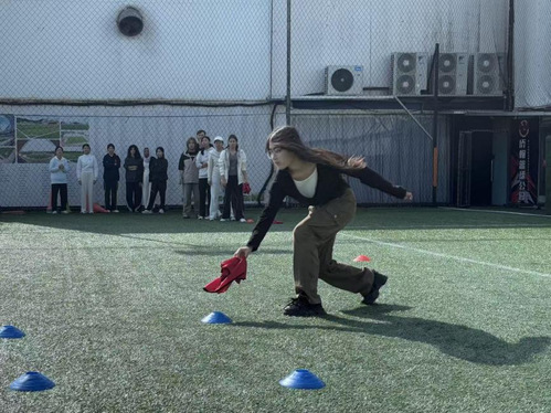 重头戏便是——“运动竞技·共展风采”九宫格游戏一开场,画风立刻燃起来!这不仅是短跑PK,更是对脑力+协作的双重考验!怎样才能三子连一线?队员们一边飞奔一边头脑风暴,从步伐凌乱到节奏统一,从各自为战到心有灵犀——场边的“加油”声浪一波高过一波,每一次击掌都是信任的升温,每一次冲刺都写满了“我们是一个团队!”