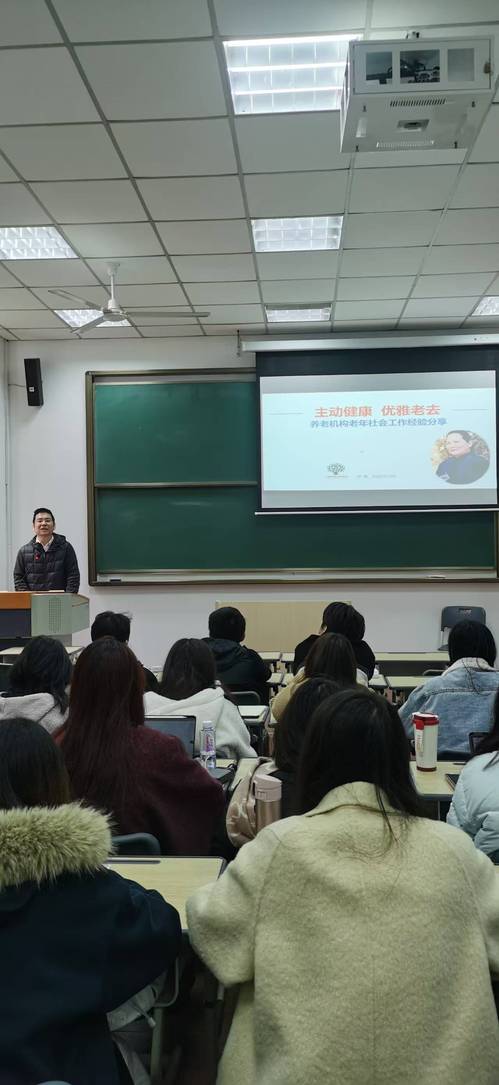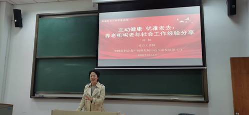 为深化社会工作专业学生对养老机构中社工实务的认识,12月2日上午,政府管理学院邀请到中国福利会老年福利发展中心事业发展部主任何帆为社会工作专业师生作题为“主动健康 优雅老去”的专题讲座。讲座由政府管理学院党委书记姚善英主持,社会工作教研室教师陶树果副教授作总结发言,来自社会工作等专业的近40位同学参加。