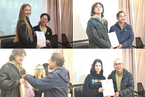 随后,几位老师一同为交换生们发放了学院精心准备的纪念品并颁发学习证明,充分肯定他们一学期来的学术努力与成长,表达对他们积极参与学院活动、融入校园生活的感谢,希望同学们能够时常回忆起在政府管理学院度过的美好时光。