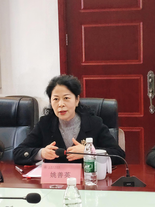 会议伊始,政府管理学院党委书记姚善英致辞,对青浦监狱与会领导和警官表示热烈欢迎。她简要介绍了上海政法学院及政府管理学院的基本概况,涵盖师资结构、学生规模与专业布局等方面,并强调应用心理学专业与青浦监狱评矫中心在工作对象与方法上的高度契合。姚书记表示,心理学在罪犯心理评估、行为矫治等方面具有专业优势,能够为监狱教育改造工作提供有效支持,同时也为心理学理论的应用提供了真实的实践场域。双方可在课程开发、实务实训、学生实习就业、课题研究等方面开展深入合作。