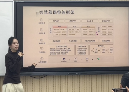 智慧树产品顾问邹雨菲开展了《AI赋能课程教学工具实操》主题分享。国家教育数字化战略行动要求,系统解析智慧慕课建设的政策导向与发展机遇,详细介绍了AI技术在课程视频建设与知识图谱体系构建中的应用逻辑,并结合实际教学运行案例,让教师直观感受AI赋能教学的实践价值。