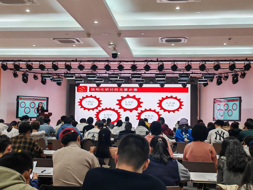 结构化研讨培训中,经济法学院专职组织员刘逸君从结构化研讨的概念和主要步骤、结构化研讨前准备工作、流程及要求为学员作了详细介绍。并围绕“如何将党章要求转化为发展对象的实际行动”这一核心,细致拆解研讨流程与方法,确保研讨高效有序、成果扎实。